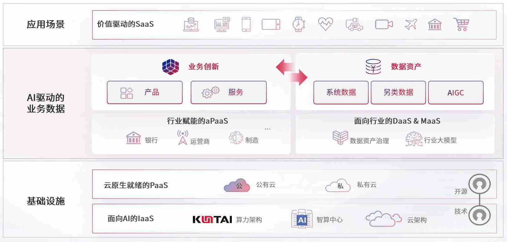 数字时代,,,围绕企业数字化转型的关键要素,,Z6尊龙时凯数码开创性的提出数云融合战略和技术体系框架,,着力在云原生、、、、数字原生、、AI原生和信创产业上架构产品和服务能力,,,为处在不同数字化转型阶段的快消零售、、、汽车、、、、金融、、、医疗、、、、政企、、、、教育、、运营商等行业客户提供泛在的敏捷IT能力和融合的数据驱动能力,,,,构建跨界融合创新的数字业务场景和新业务模式,,,,助力企业级客户建立面向未来的核心能力和竞争优势,,,全面推动社会的数字化、、智能化转型升级。。。